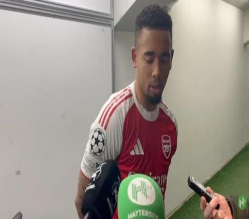 阿森纳在欧冠联赛阶段第6轮3-0战胜布鲁日,阿森纳前锋热苏斯赛后在混合区接受了采访。