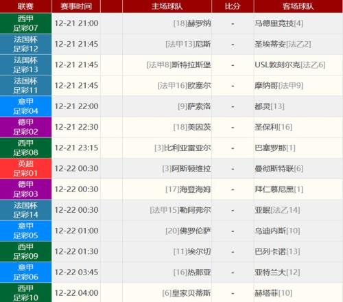 其他赛事比分: