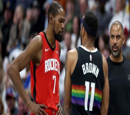 火箭前锋凯文-杜兰特和前队友布鲁斯-布朗在这场激烈的比赛中早些时候发生了一些激烈争执: