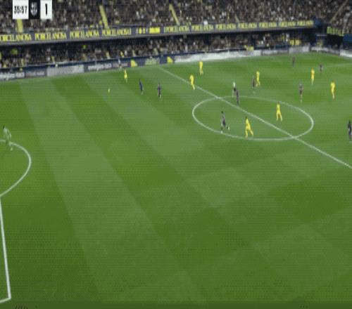 第7分钟,巴萨传球再次被断,比利亚雷亚尔如法炮制,佩雷斯张弓搭箭,拉菲尼亚和孔德合力完成关键封堵。