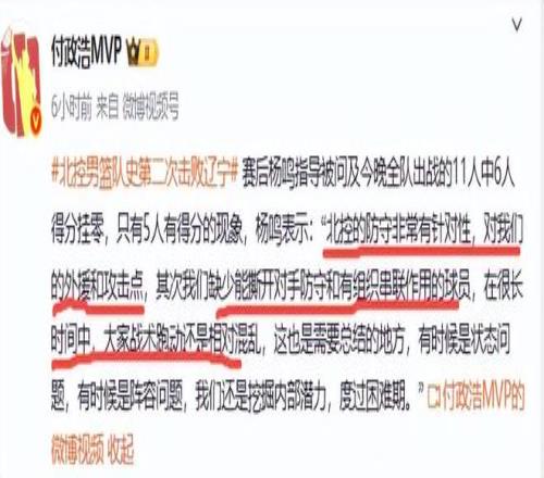 一场比赛六人得0分,只有五人得分,这是少有的奇葩现象,杨鸣如此解释不知合理不合理?大家认可他给出的原因吗?请在评论栏留言。