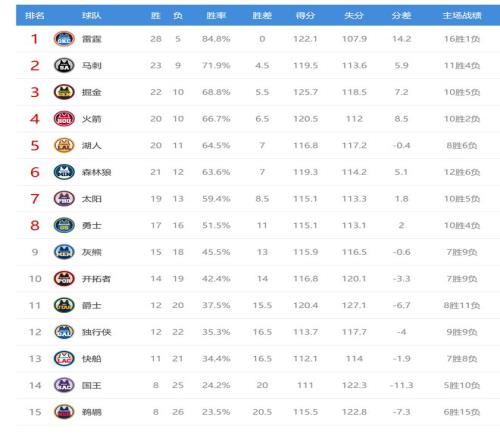 爵士输球后12胜20负,继续排名西部第11,但他们只领先第13的快船1个胜场,快船最近5连胜,快船反超爵士指日可待。