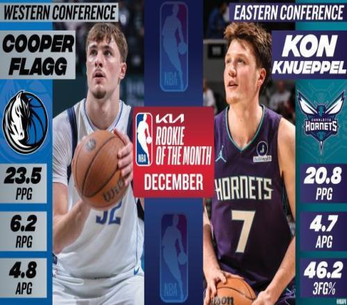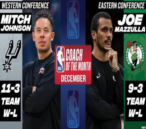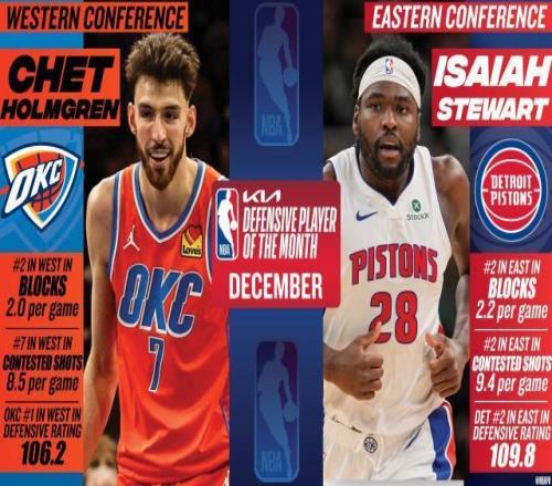 北京时间1月3日,NBA官方公布12月份各大月度最佳奖项。