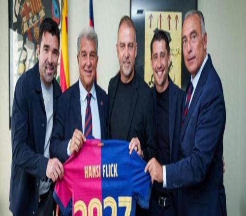 弗利克刚刚与巴萨正式续约至2027年。签约仪式上,主席拉波尔塔携体育总监拉法·尤斯特、技术总监德科以及传奇球员博扬共同出席,彰显了管理层对弗利克长期建队计划的支持。