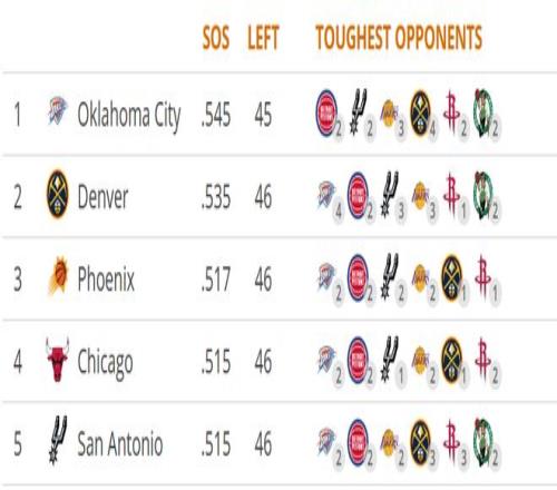 赛程难度的提升,是雷霆队战绩滑坡的另一个关键因素。
