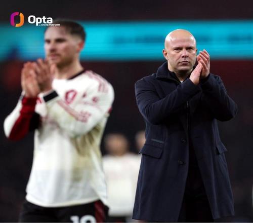 英超第21轮,利物浦客场0-0战平阿森纳,至此,斯洛特执教利物浦4次对阵阿森纳保持不败,据统计,斯洛特是唯一前4次对阵阿尔特塔保持不败的教练。
