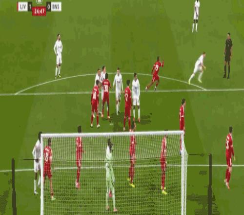 第9分钟,柯蒂斯-琼斯和麦卡利斯特连续横传,索博斯洛伊禁区外起脚劲射,世界波直挂球门左上角,利物浦打破僵局,1-0!