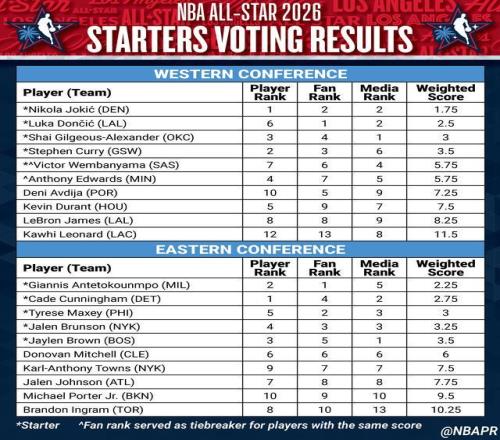 北京时间1月20日,NBA官方公布2026洛杉矶全明星正赛的首发阵容,让我们一起来盘点那些值得关注的纪录与细节:
