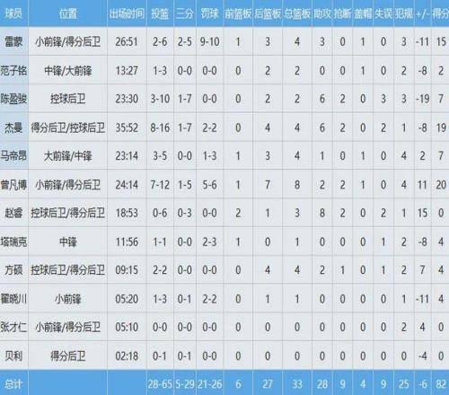 全场比赛,赵睿替补出战约19分钟,手感不佳六投全丢没有得分,但送出全队最高的8次助攻外加3板2断,正负值+15并列全场最高。