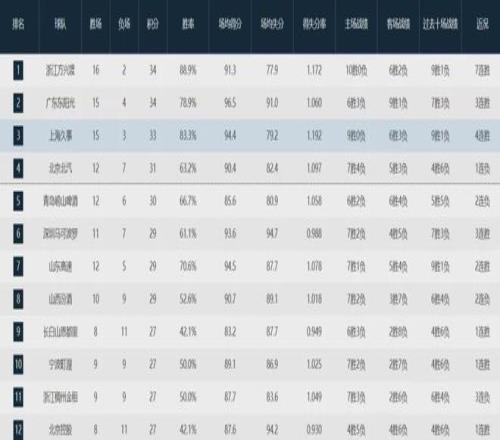 迄今为止,战绩排在北京队前面的队伍,分别是卫冕冠军广厦队(16-2)、广东队(15-4)和上海队(15-3)。