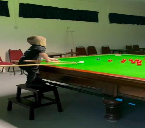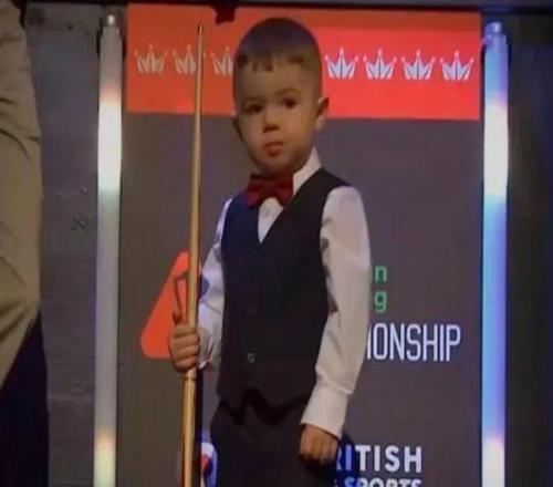 两岁半的时候,他完成了第一次击球,从此开始经常练习打球,虽然暂时还不能把斯诺克玩得很溜,但花式台球已经玩出了一些心得。