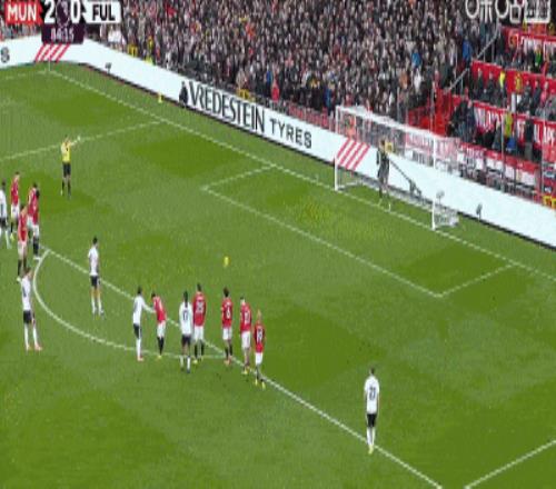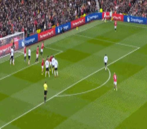 第18分钟,曼联右路禁区线定位球机会,B费开到禁区后点卡塞米罗头球破门,曼联1-0富勒姆。