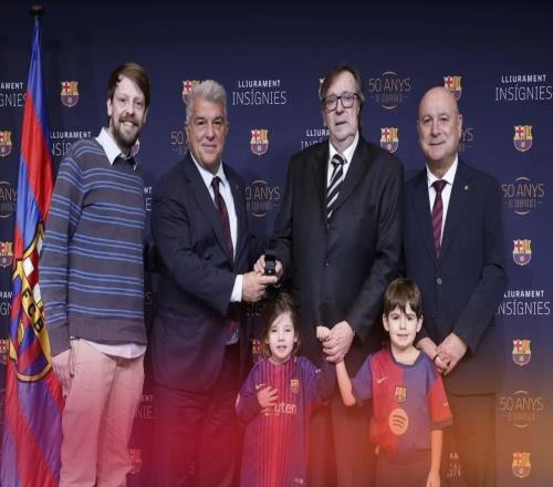 巴萨官方:拉波尔塔向满50年会员颁授金徽章,有37位会员参加
