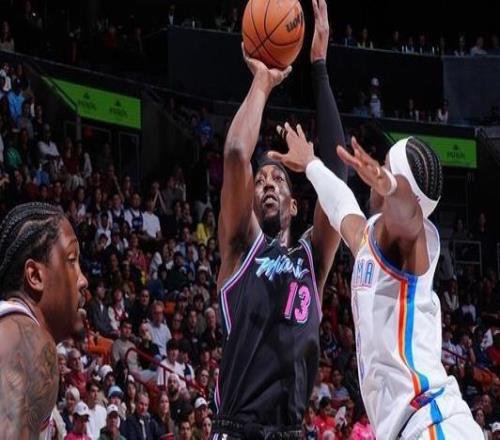 北京时间1月18日,迈阿密热火在主场以122-120险胜俄克拉荷马雷霆,成为本赛季第6支战胜卫冕冠军的球队。巴姆-阿德巴约此役三分10中6贡献出30分12篮板4助攻,6个前场篮板超过雷霆