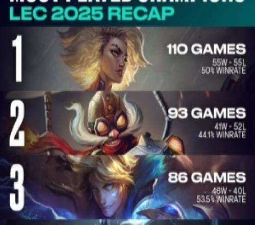 LEC2025赛季回顾:选用最多的英雄芮尔&被禁最多的英雄大树